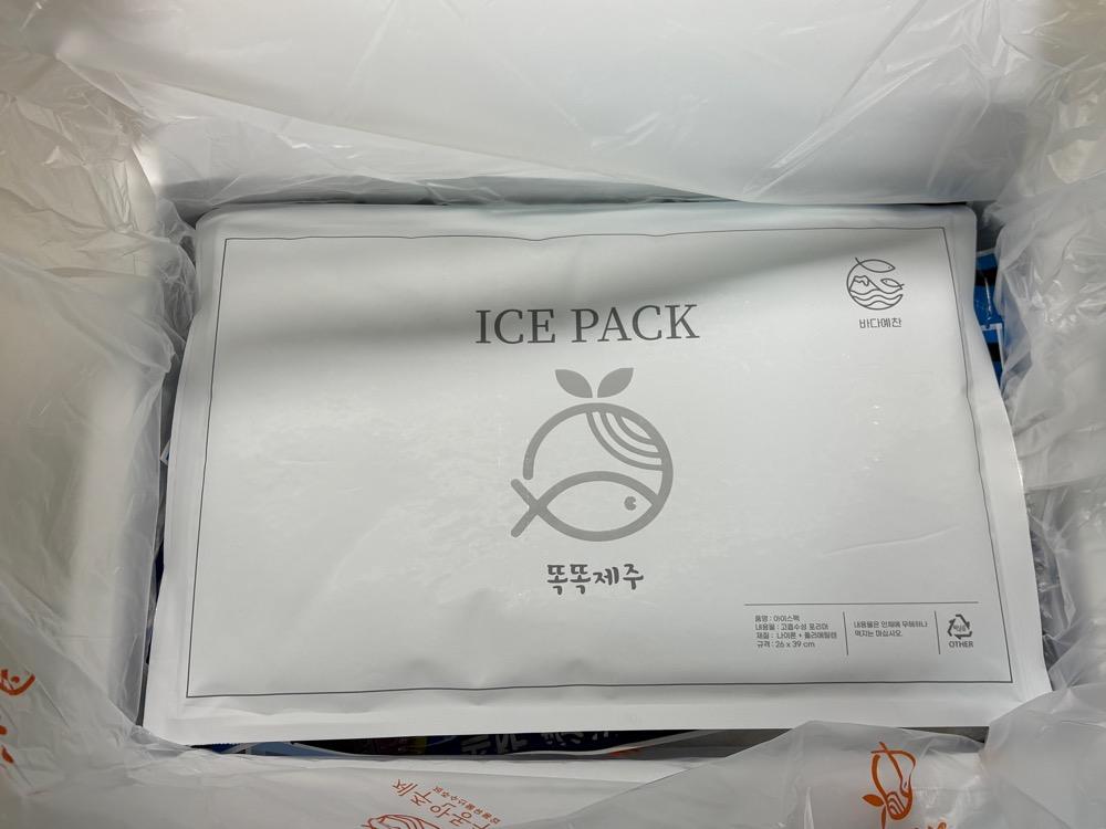 보냉재질을 열면 커다란 아이스팩이 나오는데요. 일반 아이스팩이 아닌 아이스박스 크기에 정확히 맞춘 맞춤제작 아이스팩이라 더 믿음이 갔습니다.