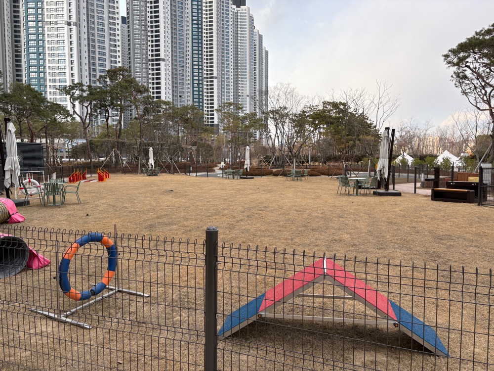 롯데호텔앤리조트 김해는 반려동물 친화 숙소라 건물 뒤에는 넓은 반려동물 놀이터도 있었습니다.