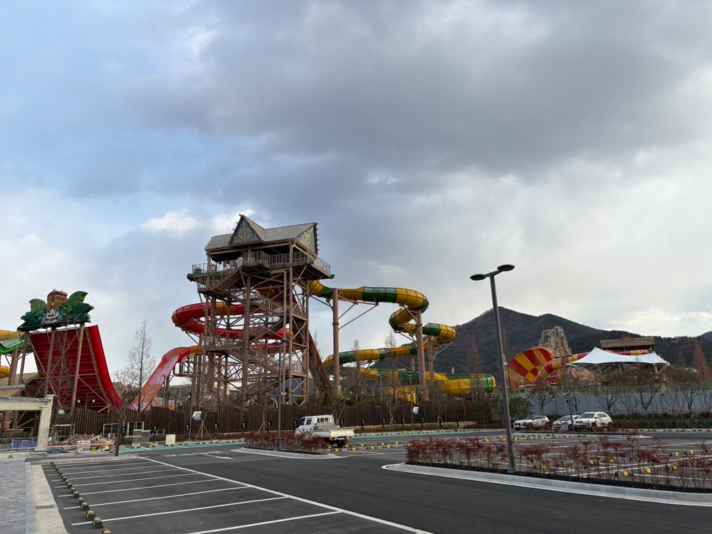 리조트 옆에는 워터파크가 위치해 있었습니다. 지금은 한겨울이라 야외는 운영하지 않아 조용했습니다. 애들과 여름에 와봐야겠습니다.