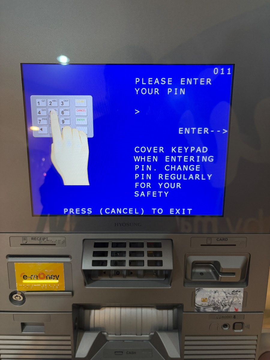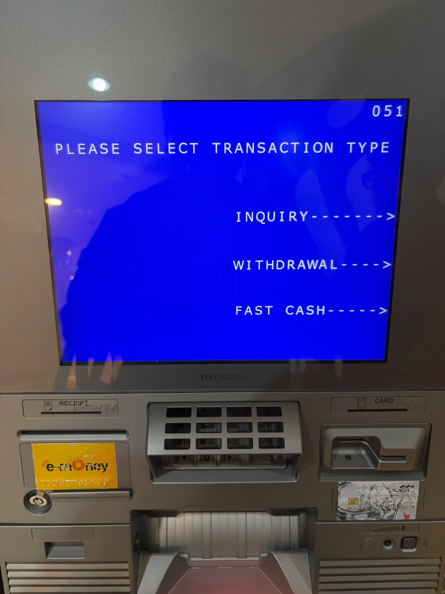 그러니 우측에 카드가 배출되었고 제가 요청한 현금도 받을 수 있었습니다.