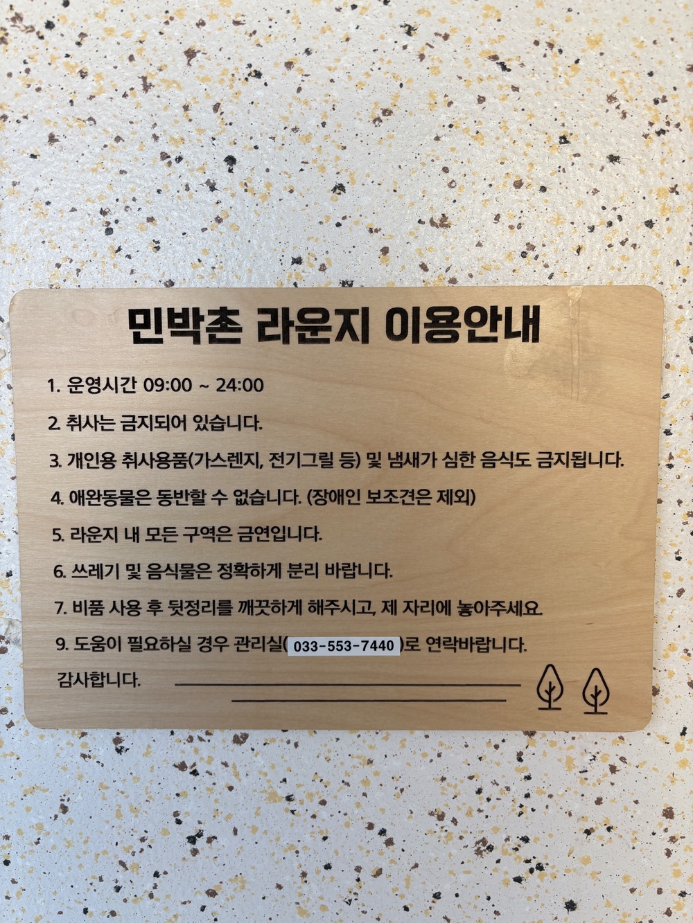 민박촌 라운지 이용안내입니다. 라운지에서도 역시 취사는 금지입니다. 간단한 식사는 가능하며, 공용이니깐 서로에 대한 배려는 기본이겠죠?